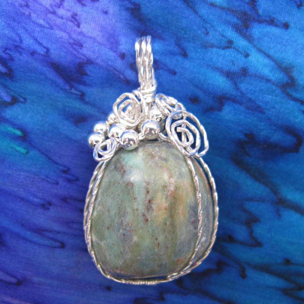 This one-of-a-kind pendant is lovingly hand-wrapped in sterling silver wire. It is about 2.00" in length and a little more than 1.00" wide and it has been charged with Reiki. It will include an 18" black satin cord necklace so that it is ready-to-wear and will be sent via USPS first class mail in a 2"x3" white box for gift-giving. The retail value is $48.